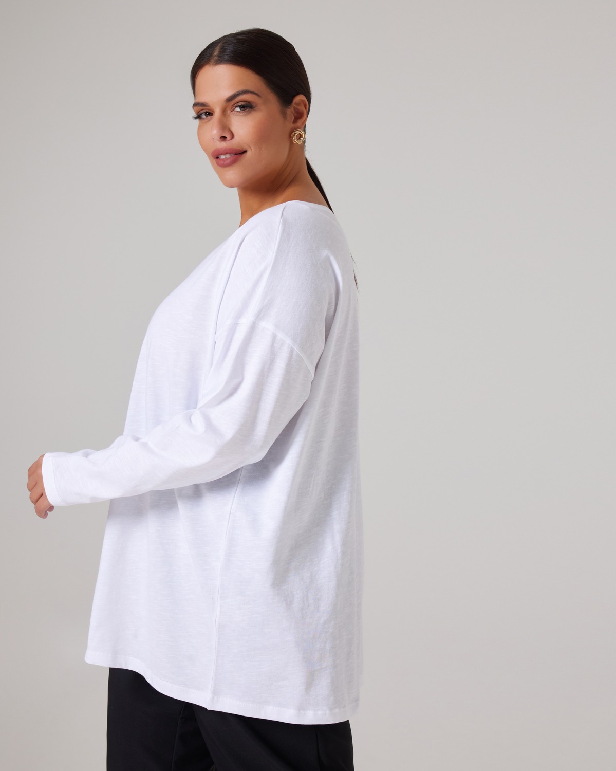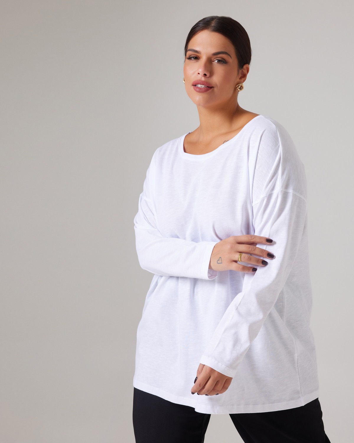 Μπλούζα Βαμβακερή Με Στρογγυλή Λαιμόκοψη Λευκό