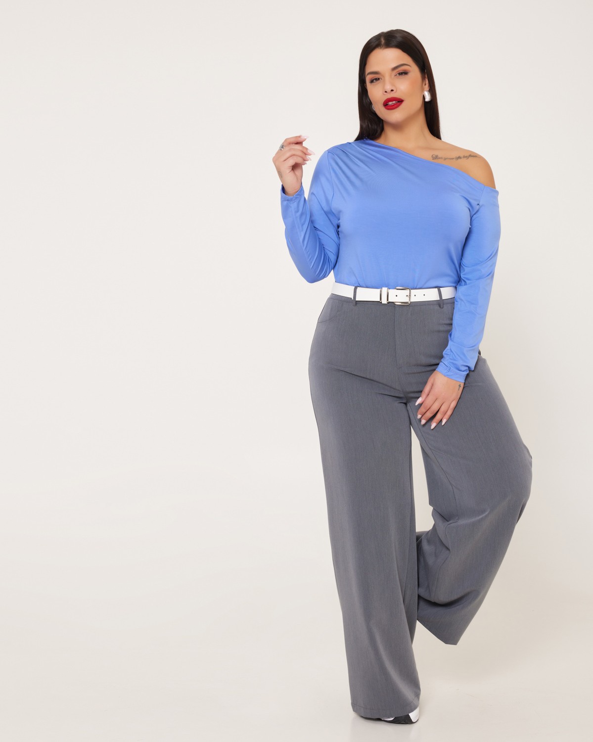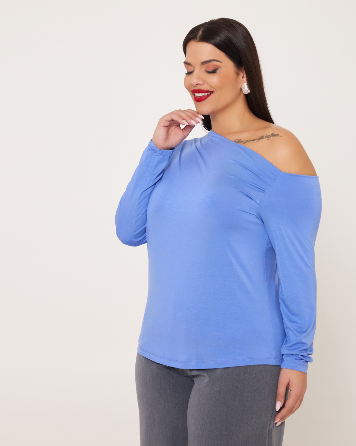 Μπλούζα Με Έξω Τον Έναν Ώμο Και Σούρες Σιέλ