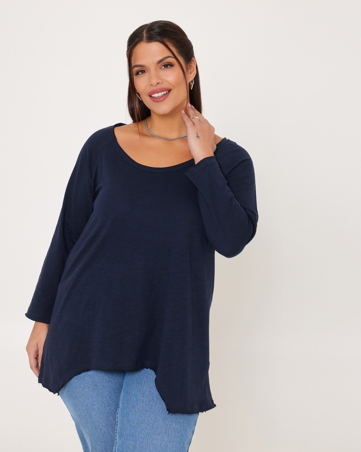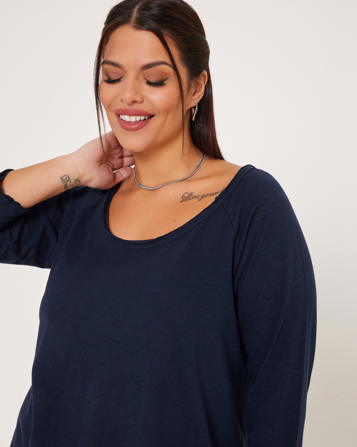 Μπλούζα Βαμβακερή Με Φάγωμα Μπλε Σκούρο
