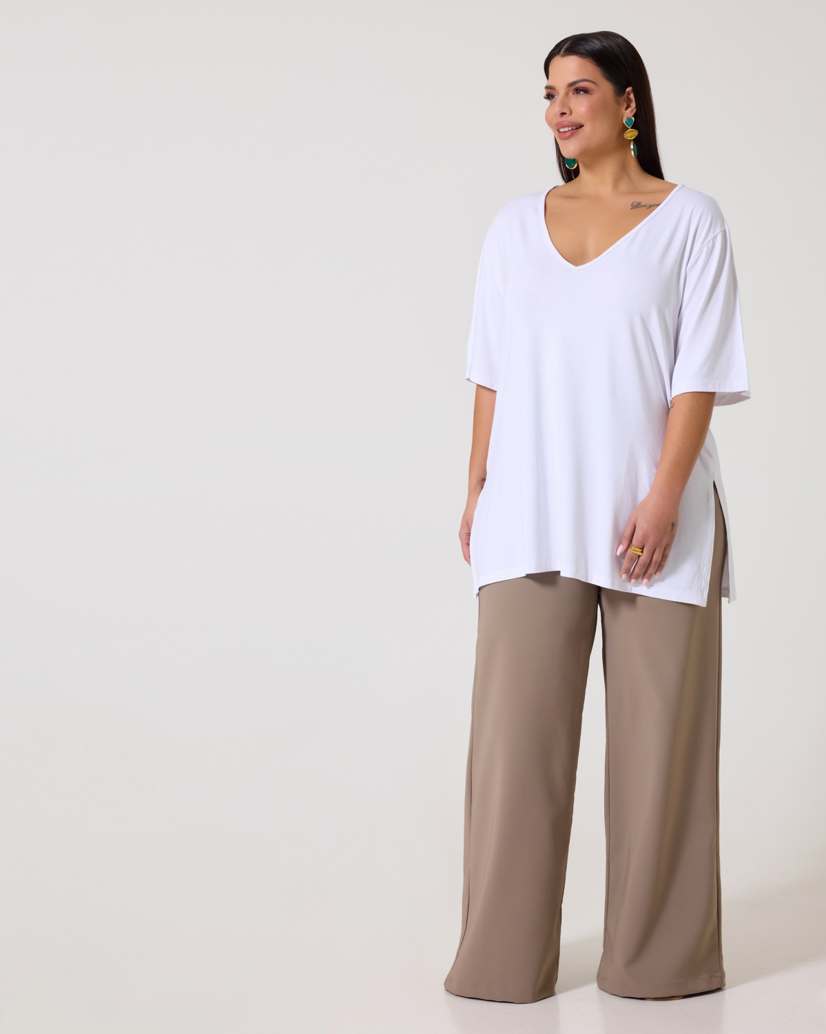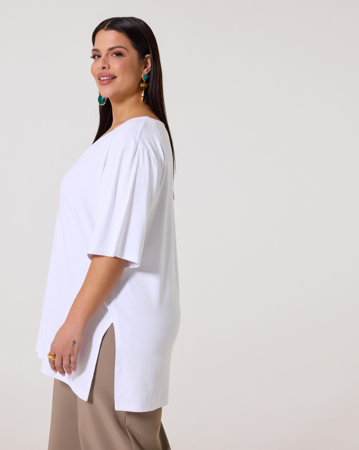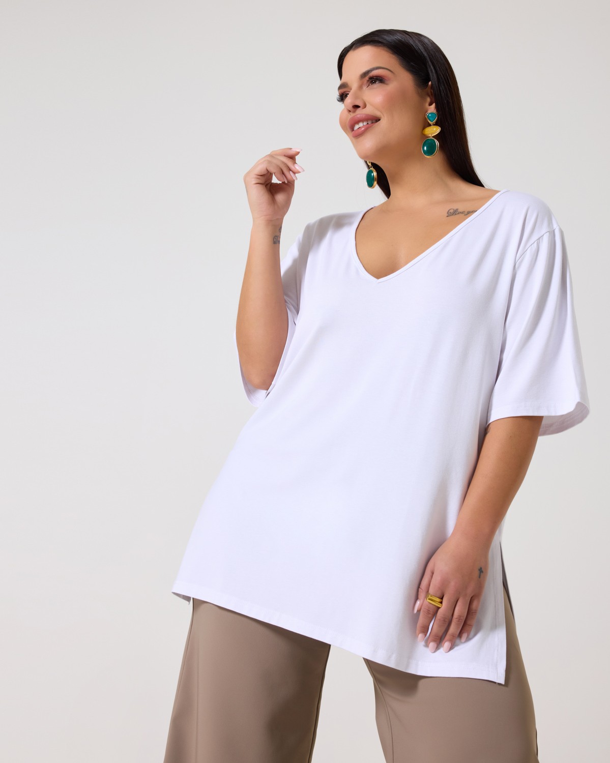 Μπλούζα Με V Και Άνοιγμα Στο Πλάι Λευκό