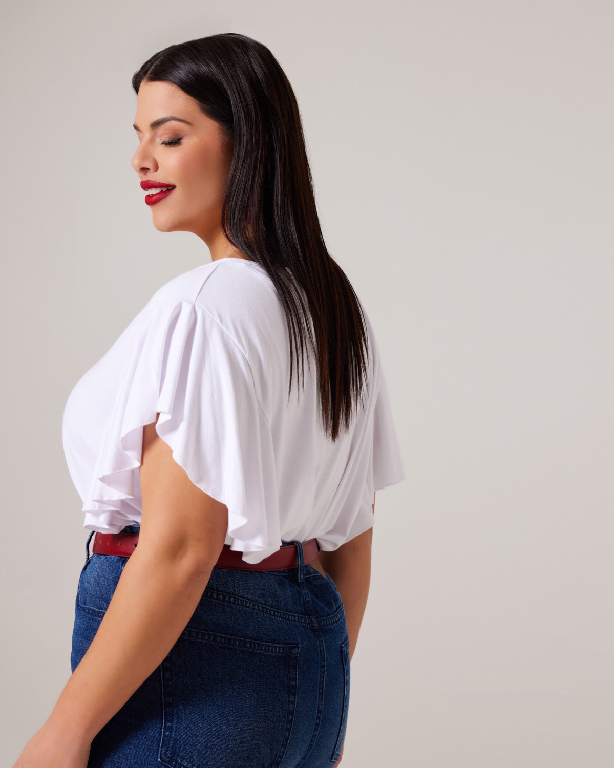 Μπλούζα Με Βολάν Στο Μανίκι Λευκό