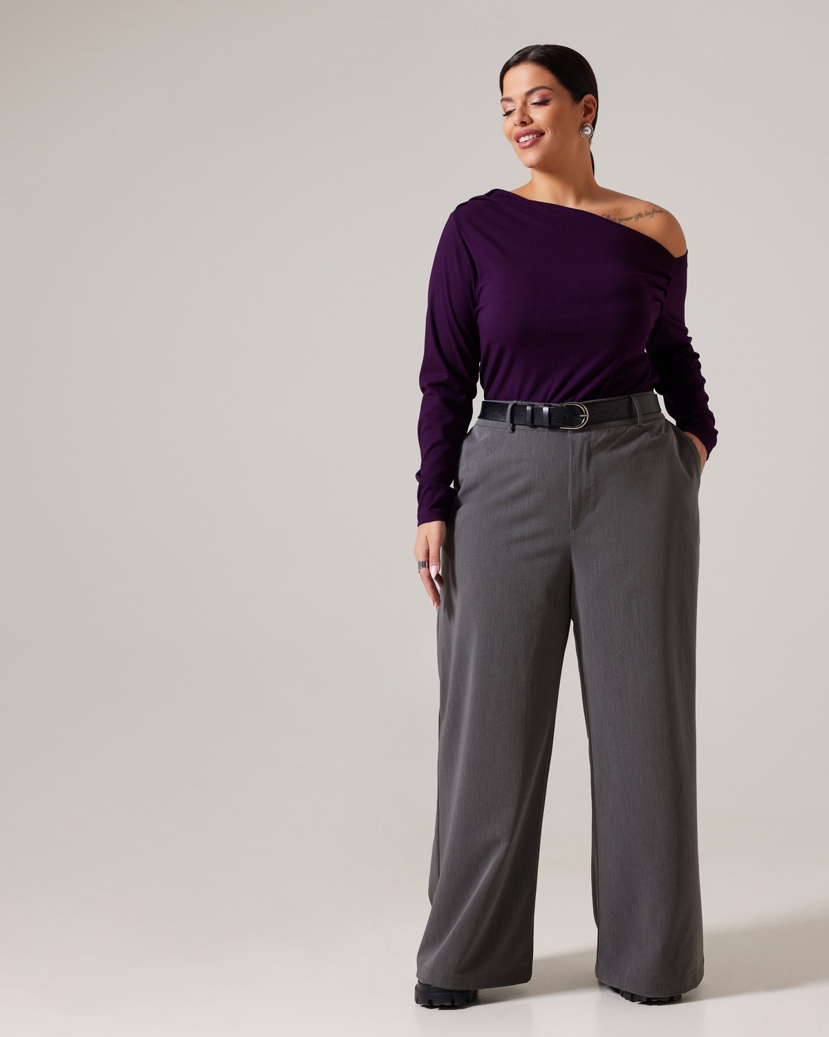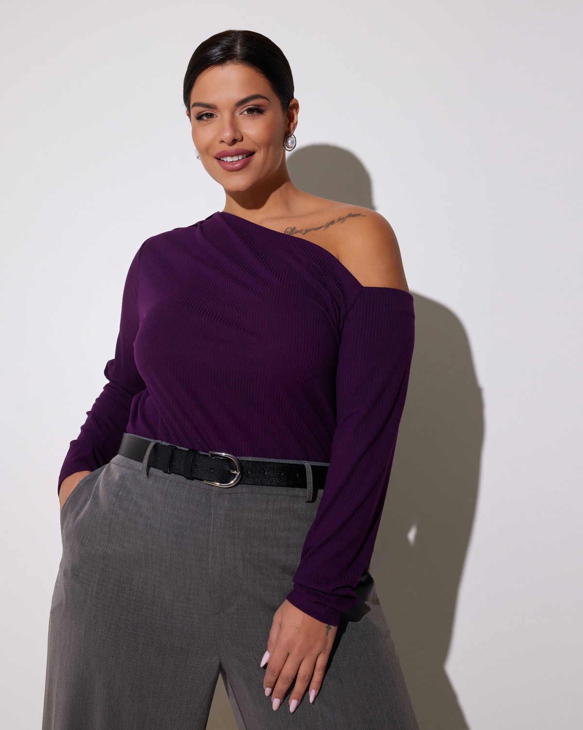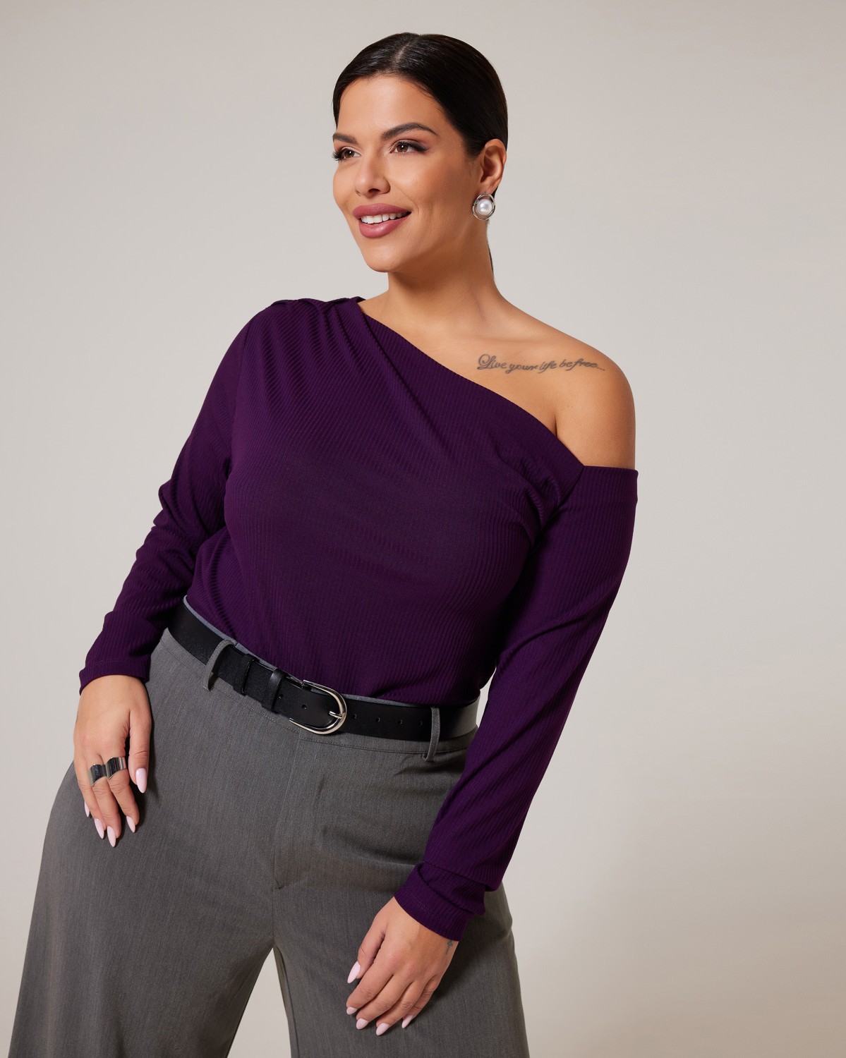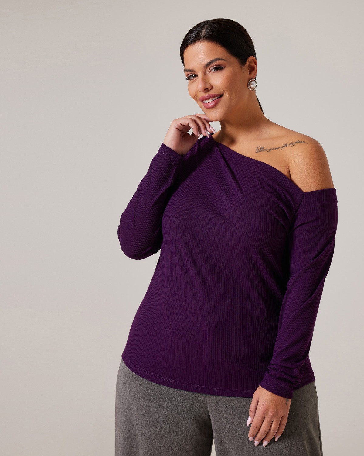 Μπλούζα Ριπ Με Ασύμμετρο Ντεκολτέ Μελιτζανί