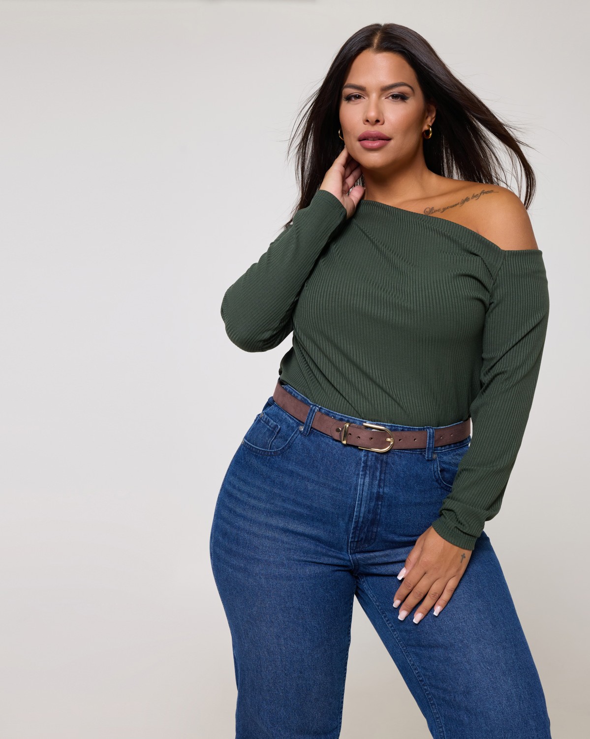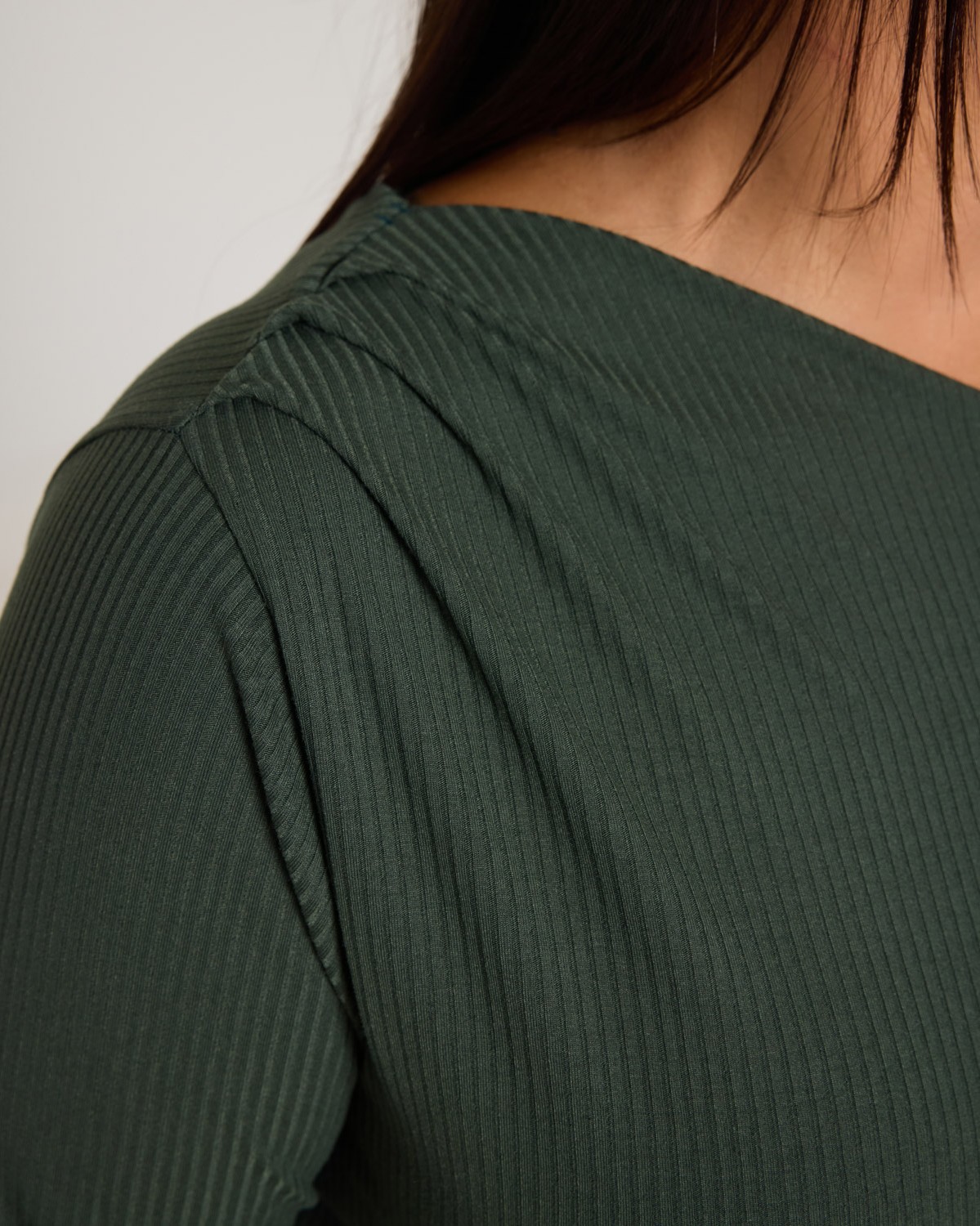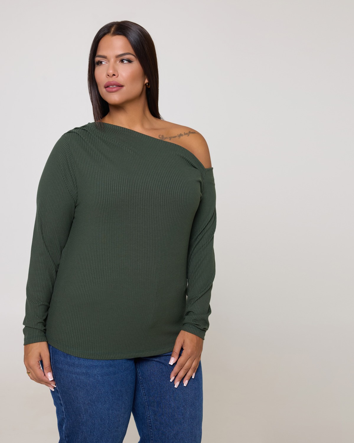 Μπλούζα Ριπ Με Ασύμμετρο Ντεκολτέ Χακί
