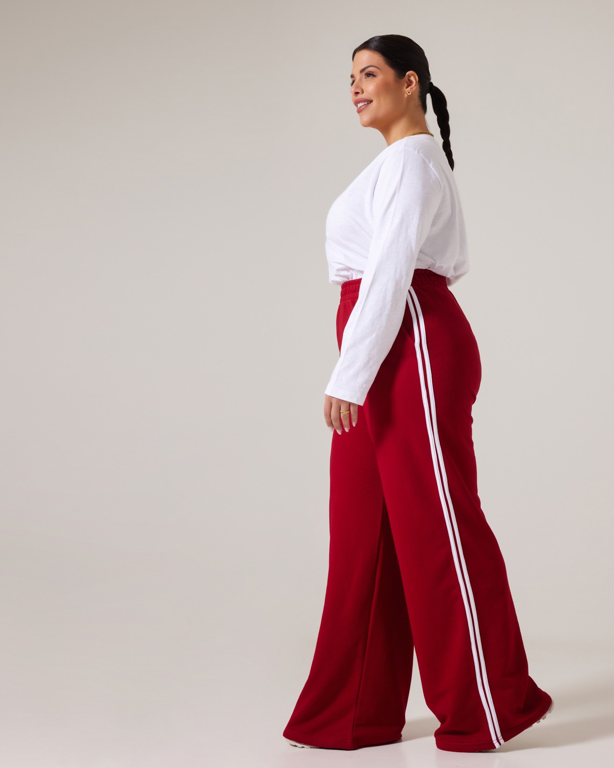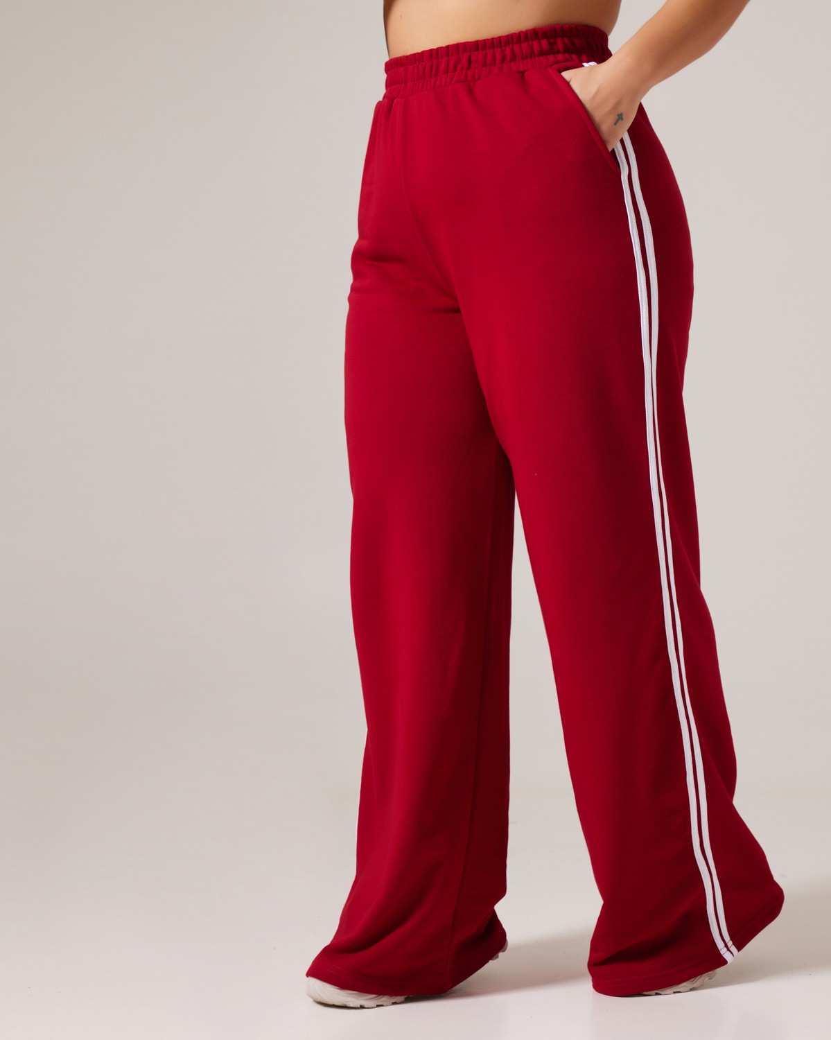 Παντελόνι Φόρμας Καμπάνα Με Γραμμές Στο Πλάι Cherry