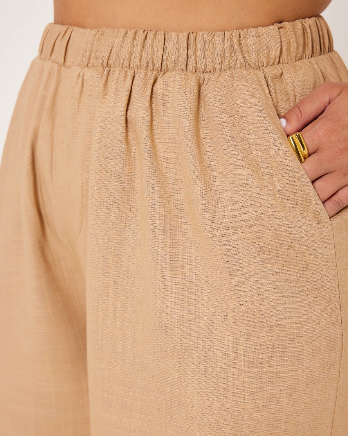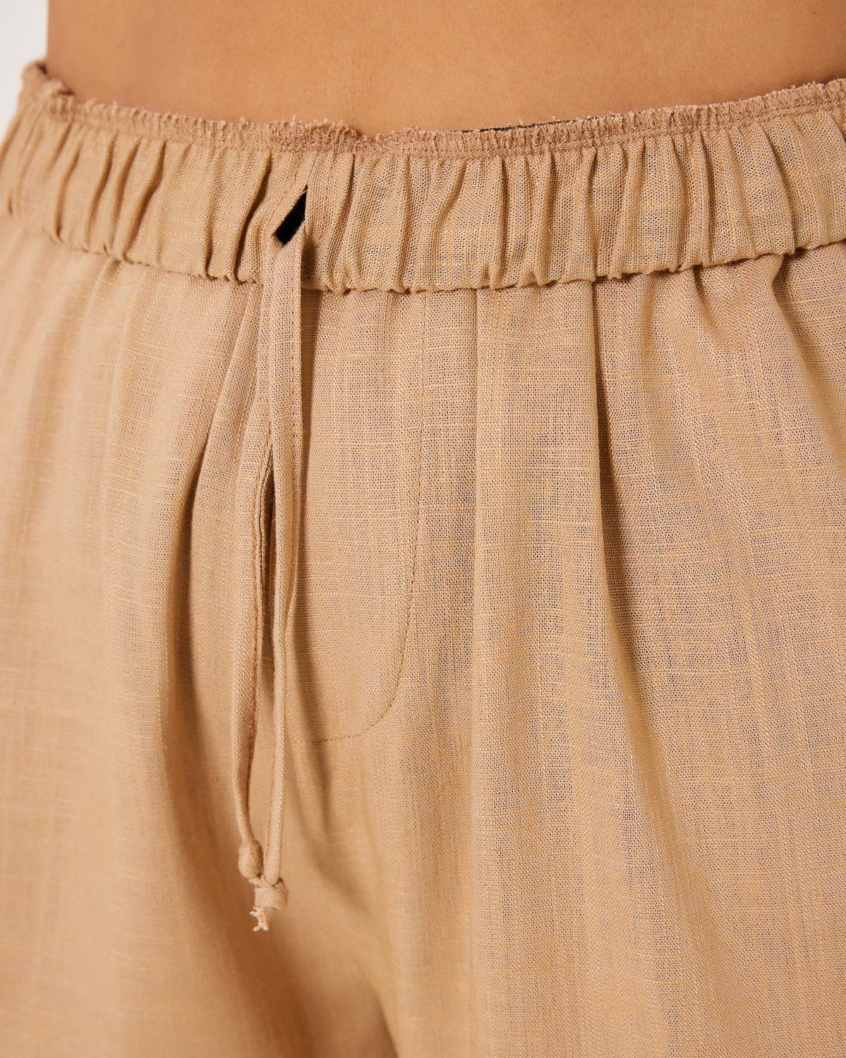 Παντελόνι Λινό Με Εσωτερικά Κορδόνια Μπεζ Σκούρο