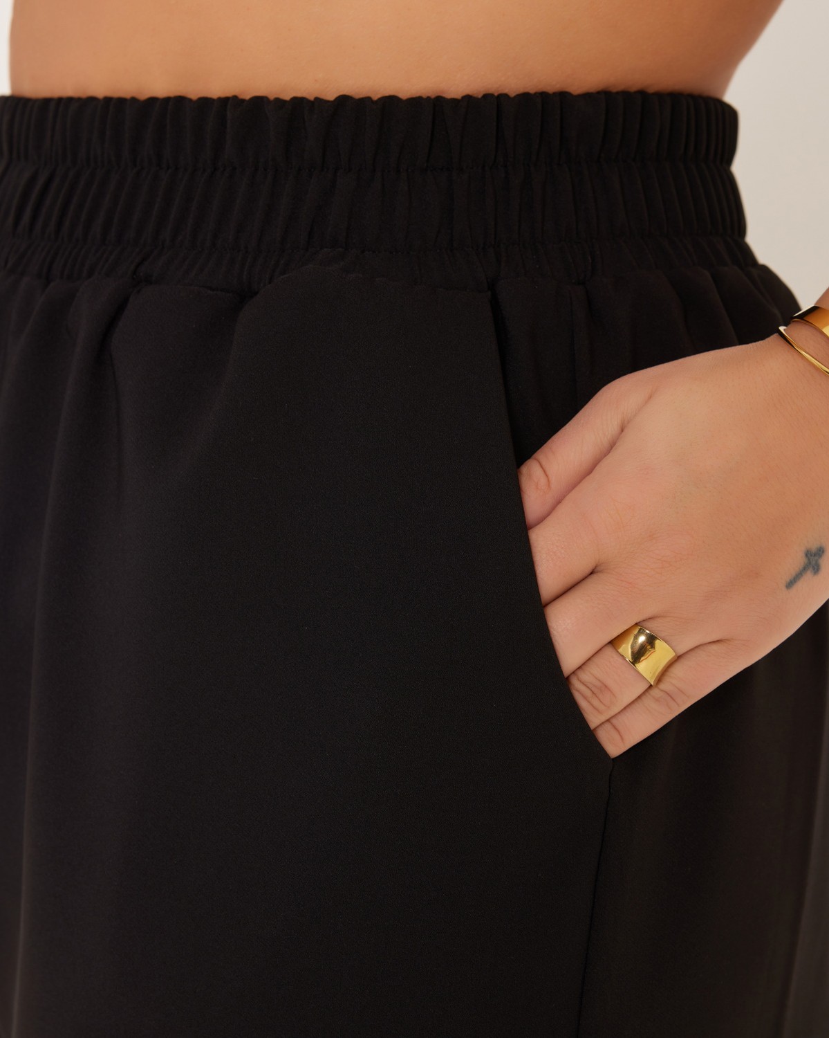 Παντελόνι Με Λάστιχο Και Ρεβέρ Μαύρο