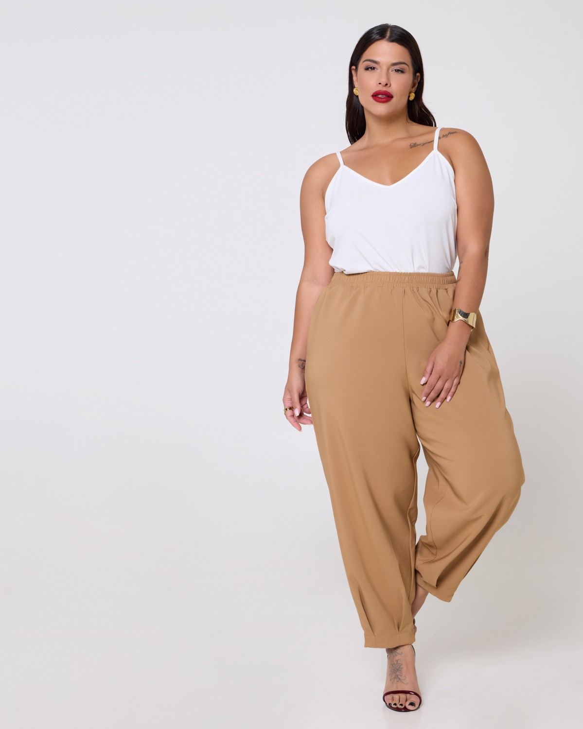 Παντελόνι Με Πιέτες Στο Κάτω Μέρος Μπεζ Σκούρο