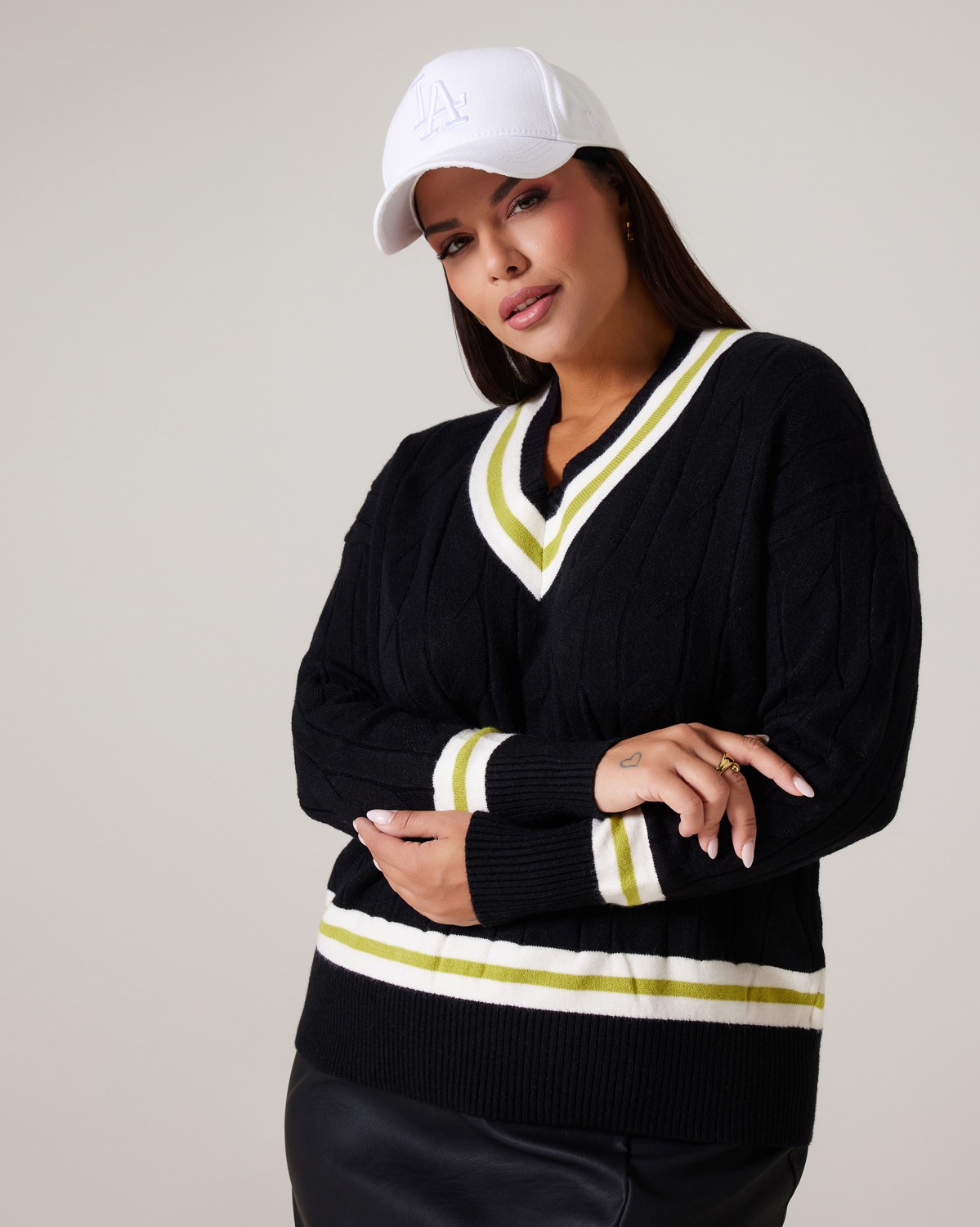 Πλεκτό Απαλή Υφή Τύπου Κολεγιακό Μαύρο