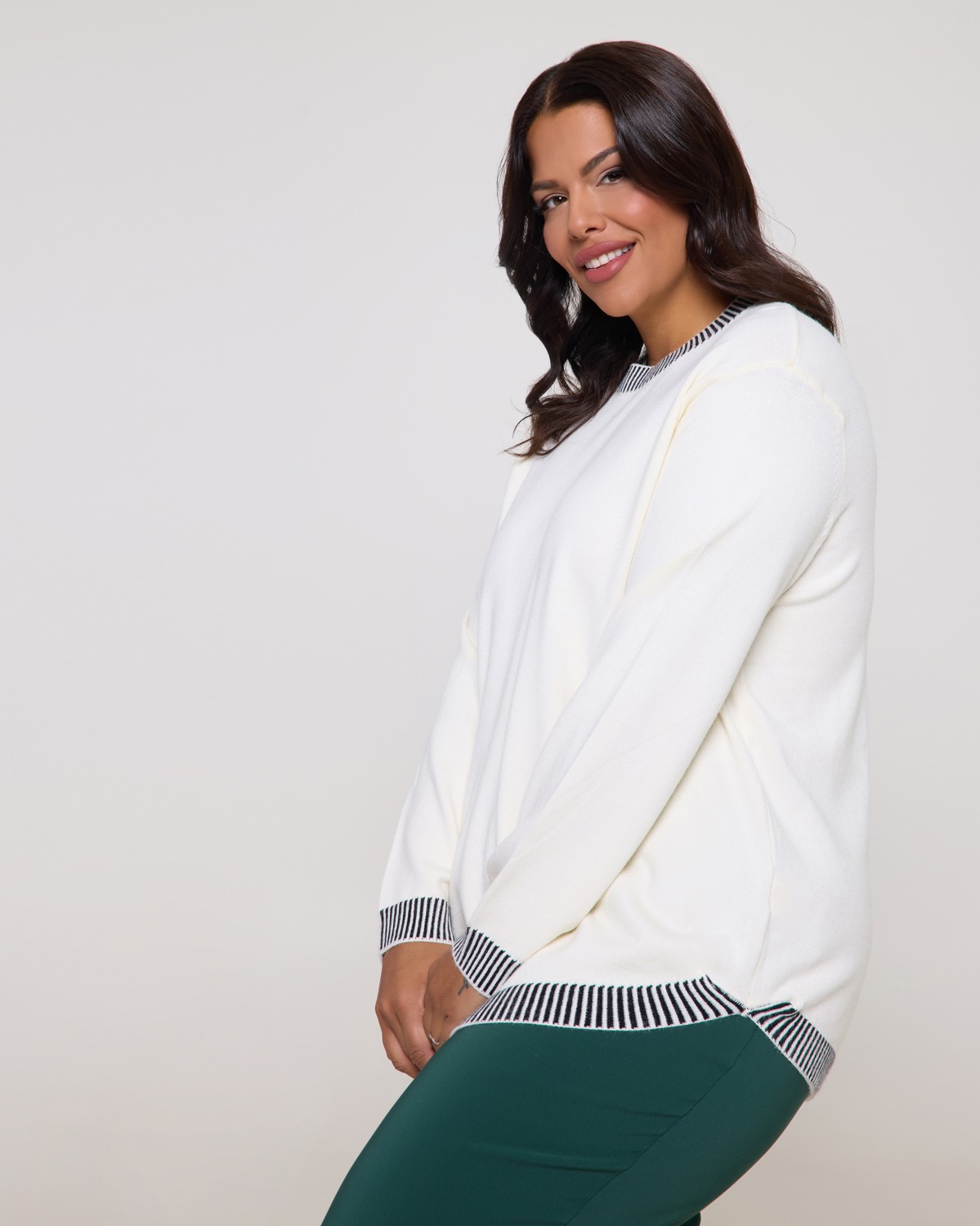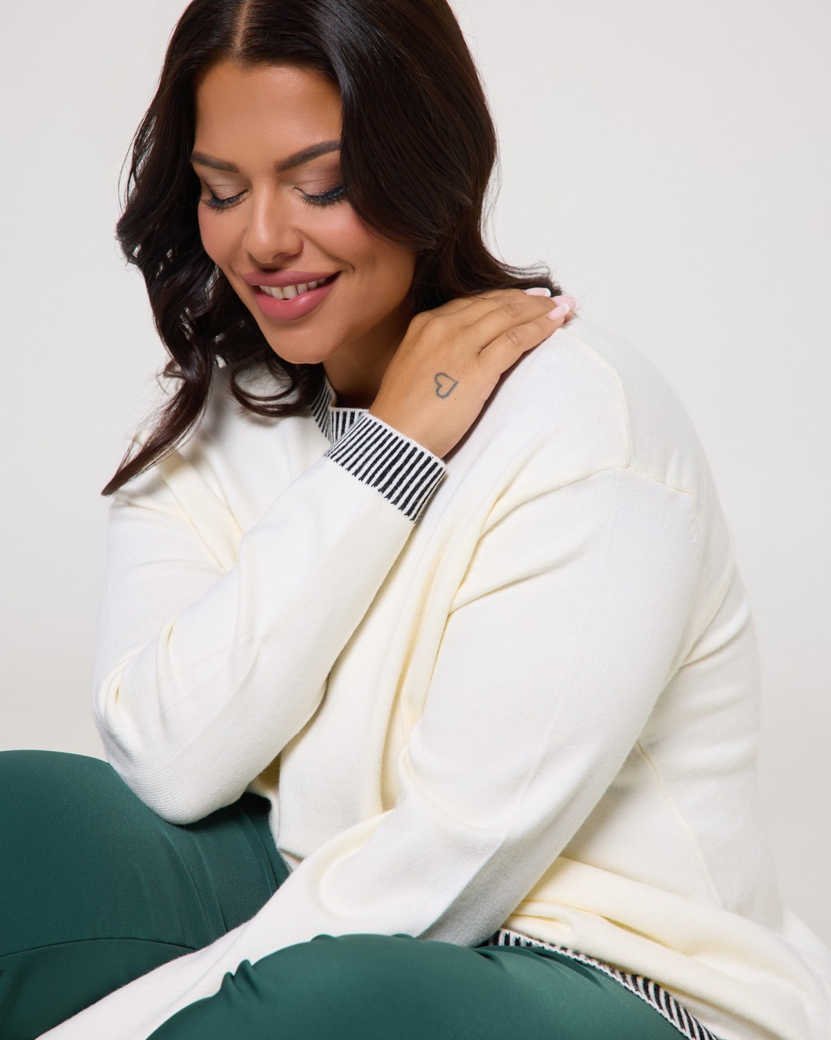 Πλεκτό Απαλή Υφή Ριγέ Λεπτομέρειες Off-White