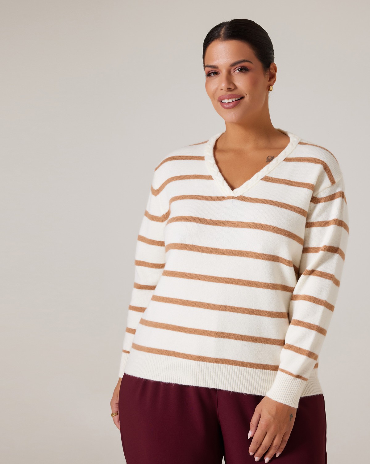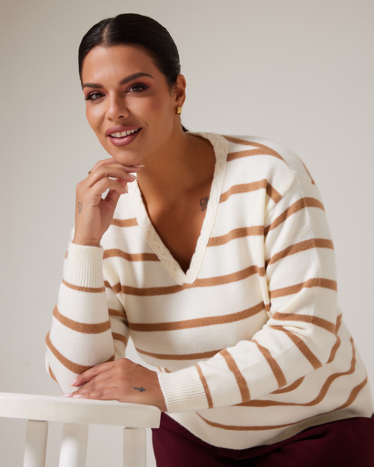 Πλεκτό Απαλή Υφή Ριγέ Off White-Μπεζ