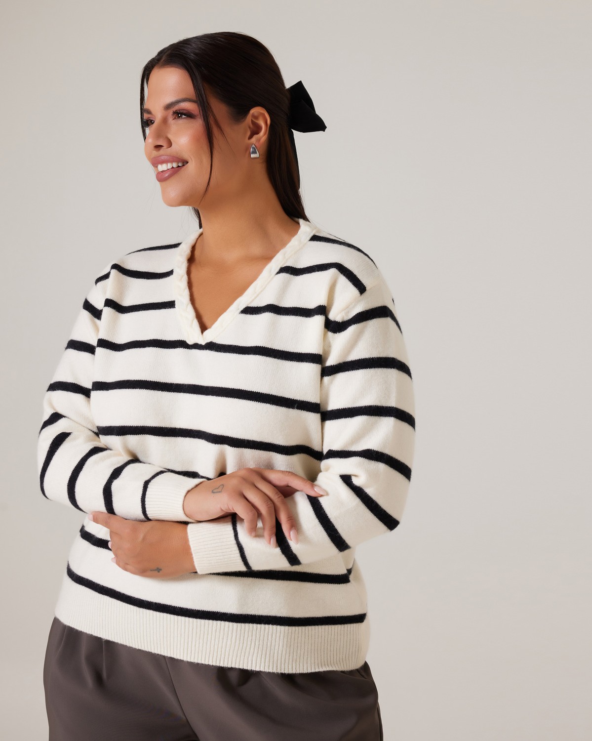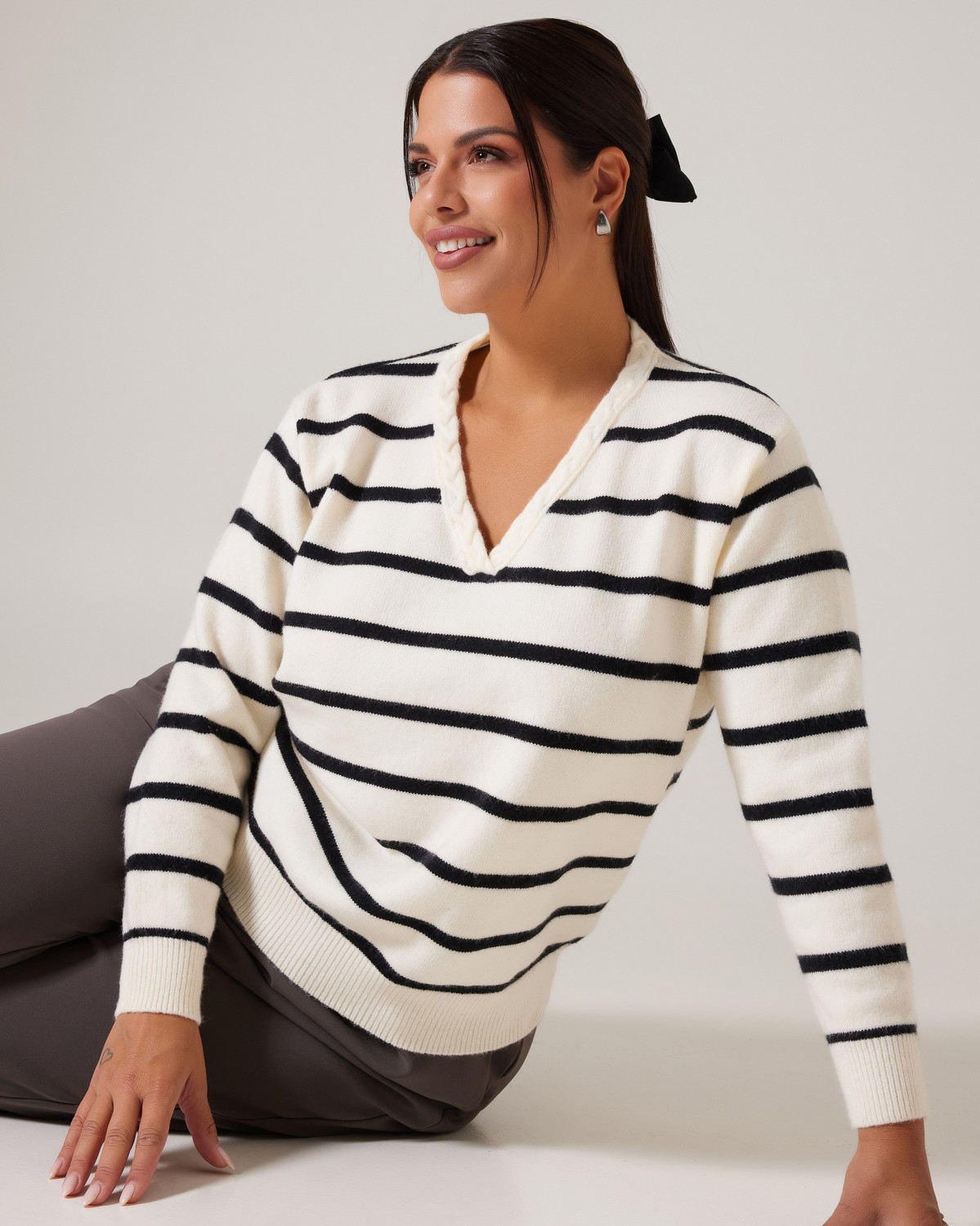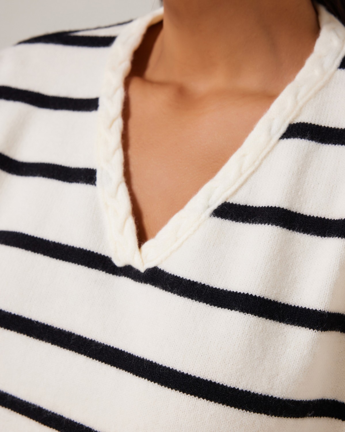 Πλεκτό Απαλή Υφή Ριγέ Off White-Μαύρο