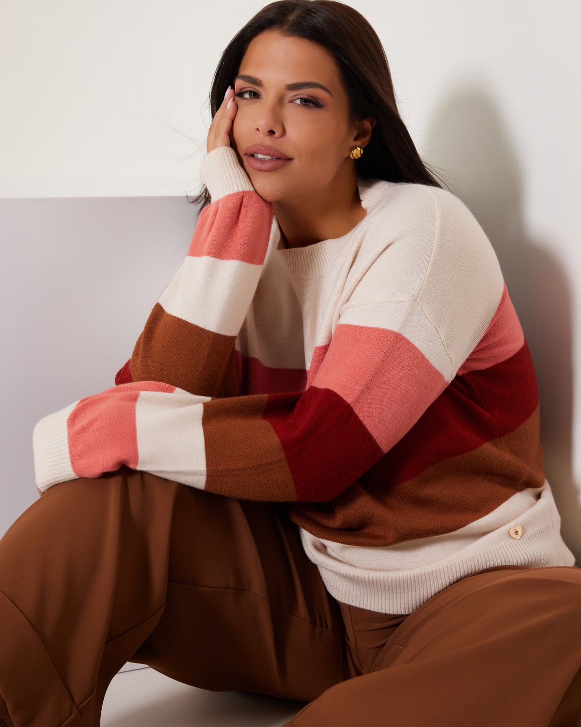Πλεκτό Απαλή Υφή Ριγέ Πολύχρωμο Εκρού