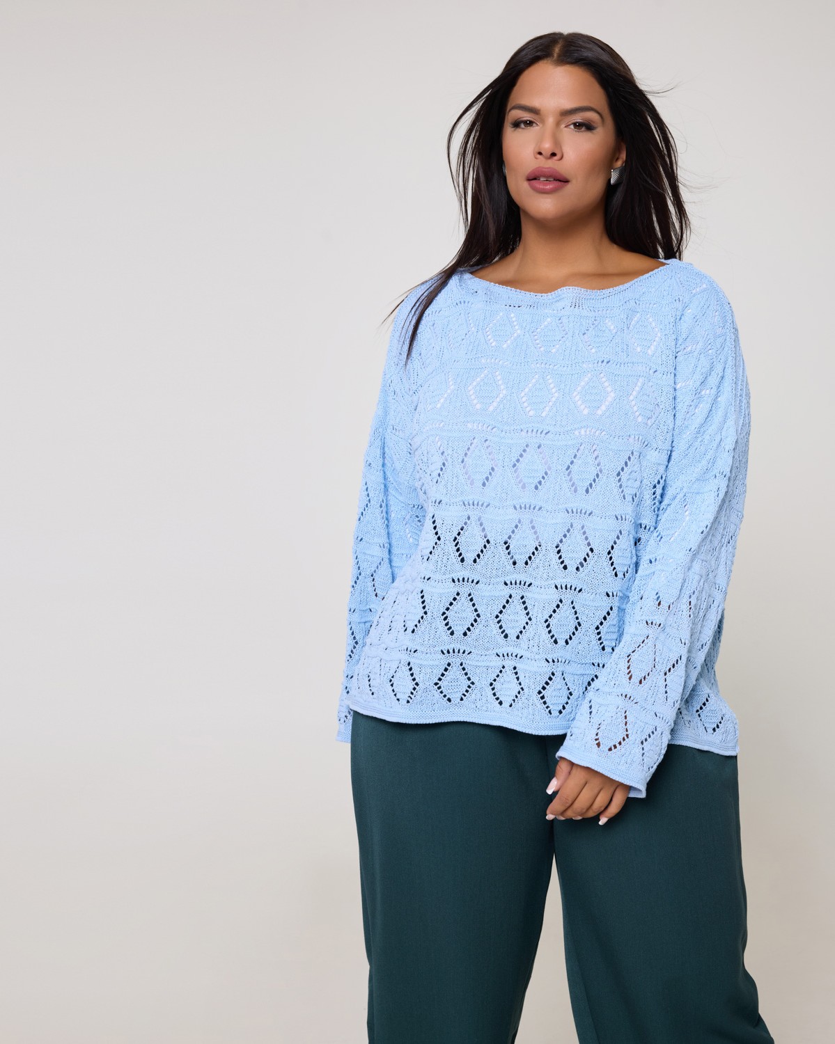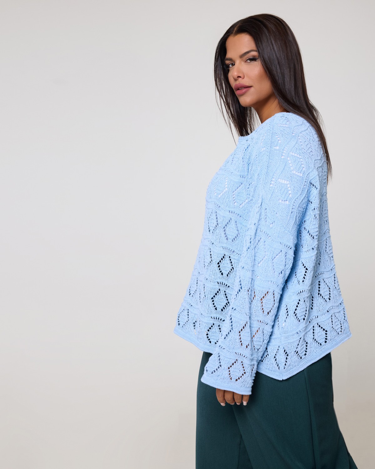 Πλεκτό Διάτρητο Με Ρόμβους Σιέλ