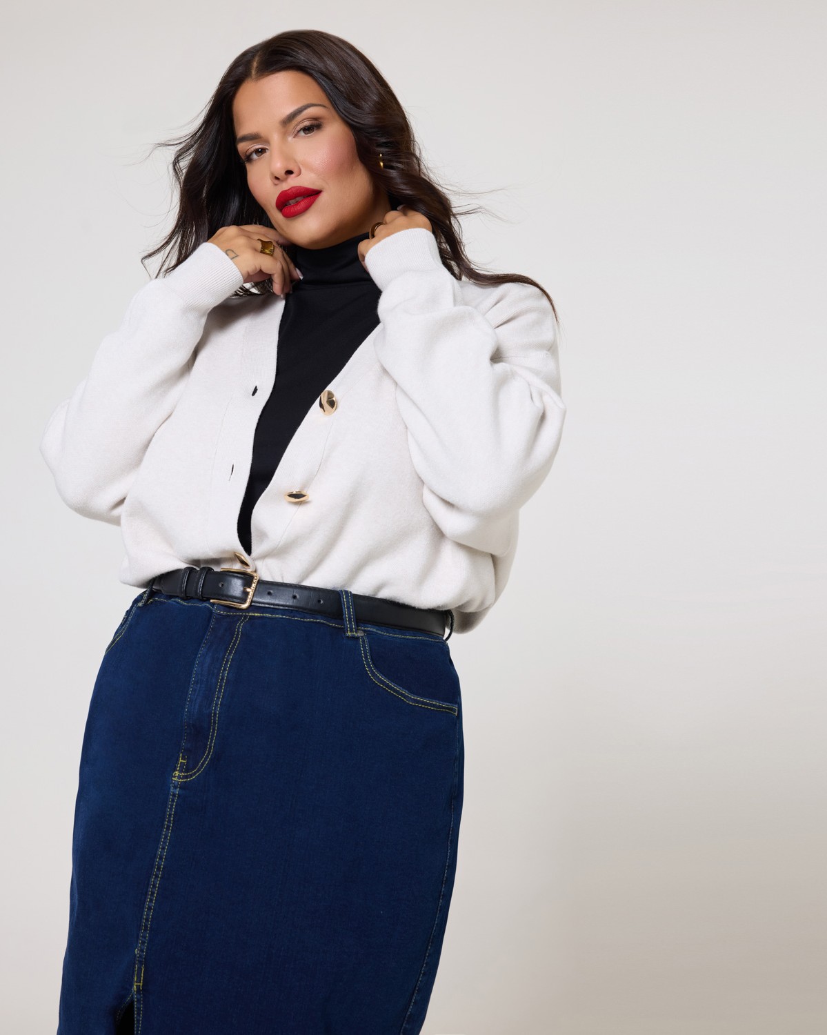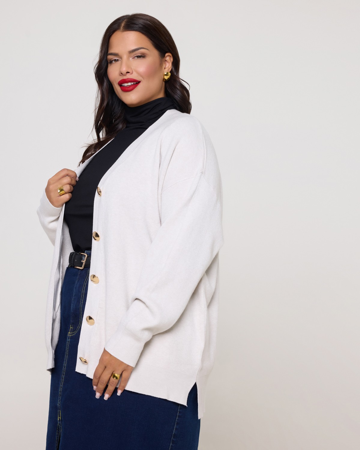 Πλεκτή Ζακέτα Με Μεγάλα Χρυσά Κουμπιά Μπεζ Του Πάγου