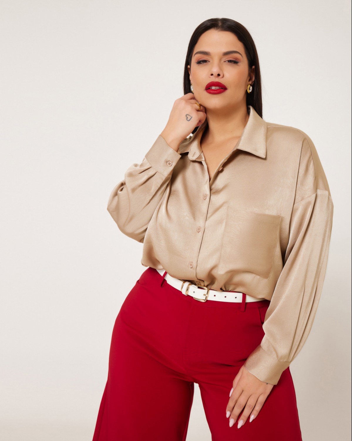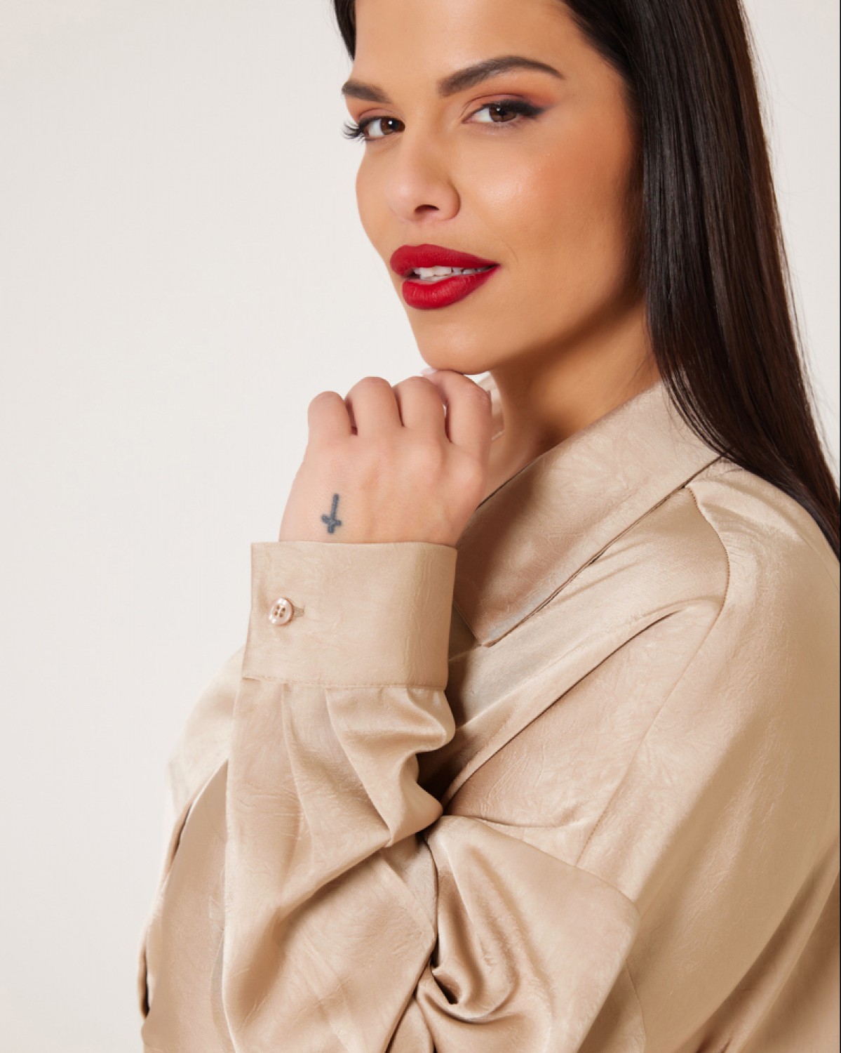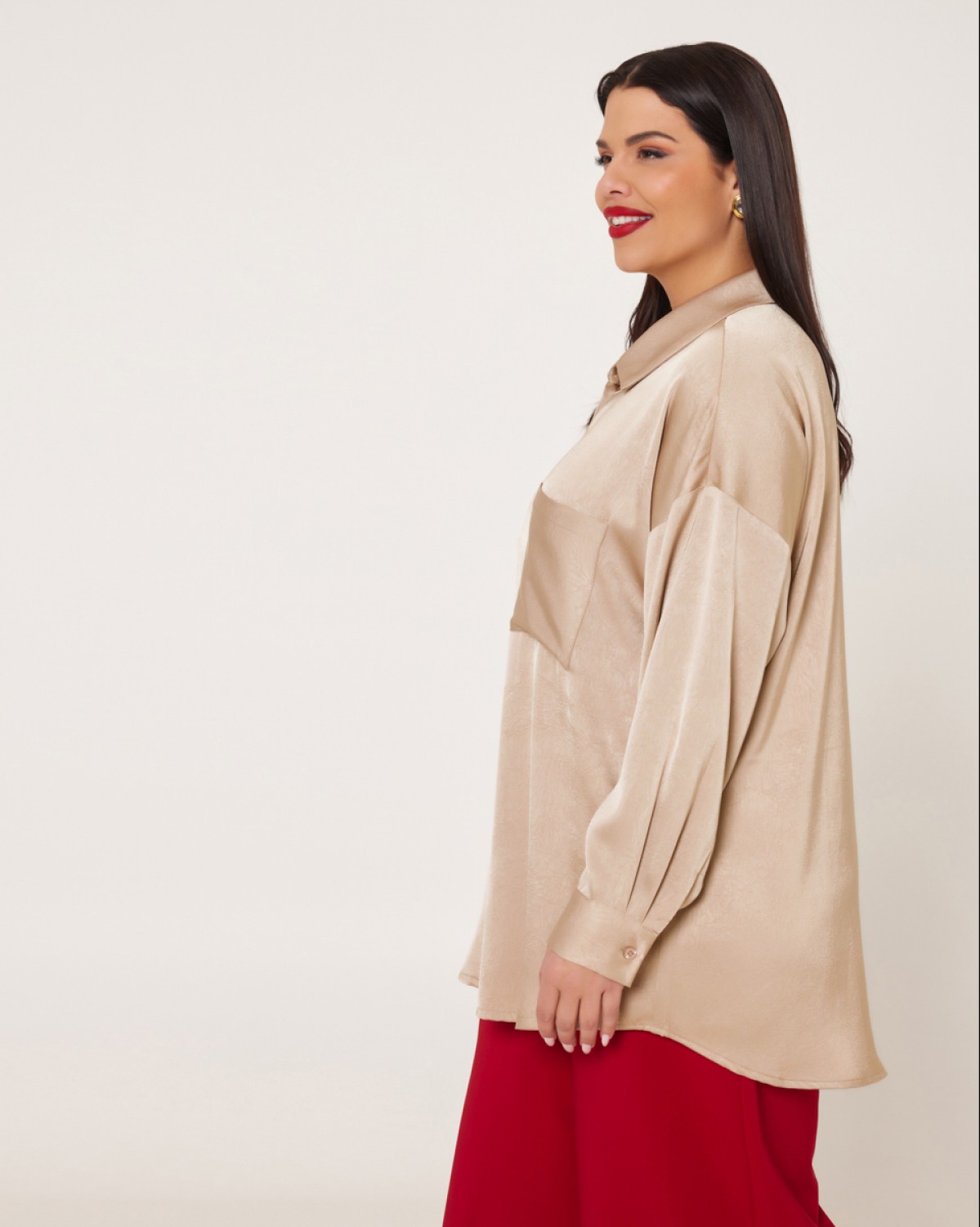Πουκάμισο Σε Crinkle Εφέ Με Τσέπη Ψυχρό Μπεζ