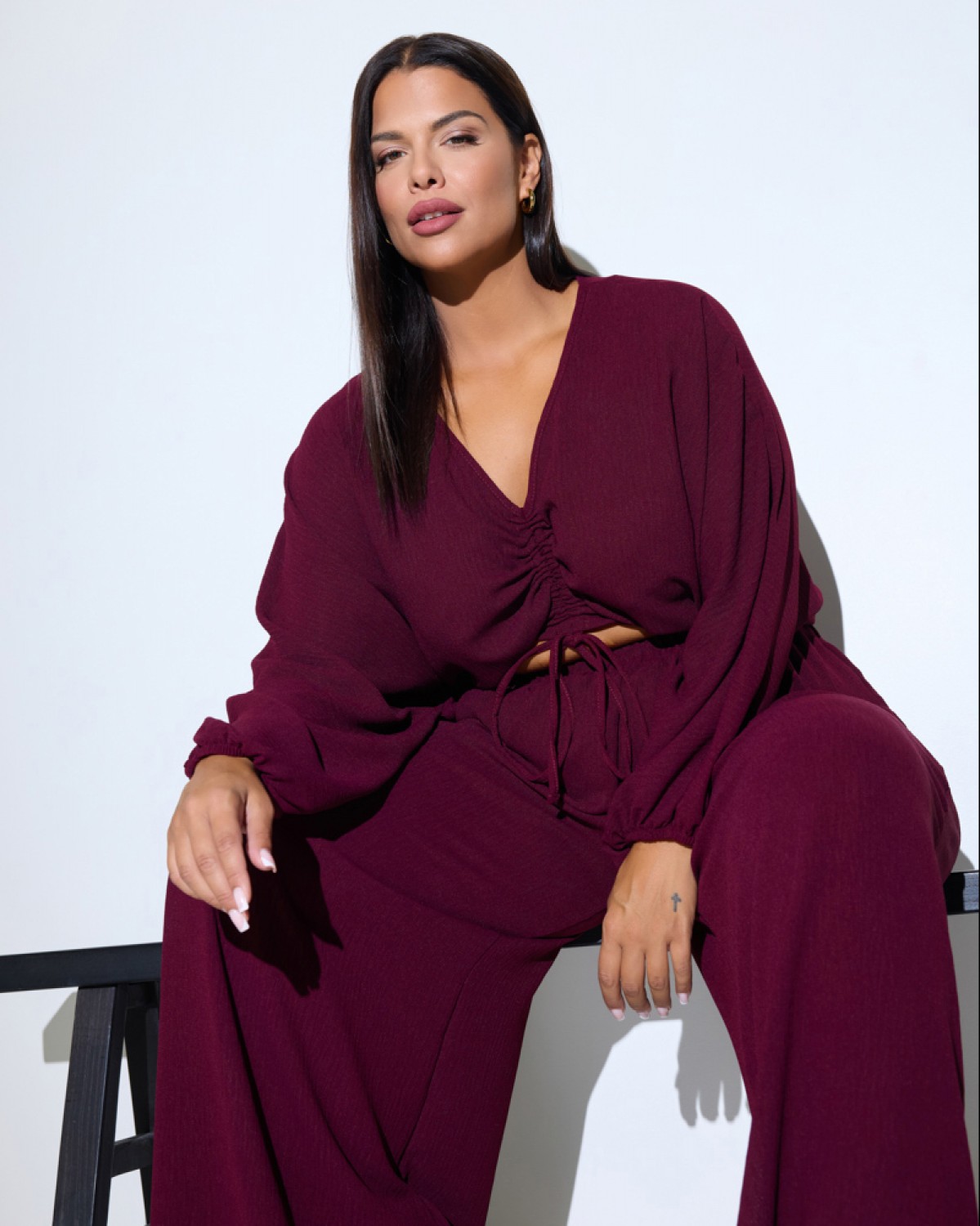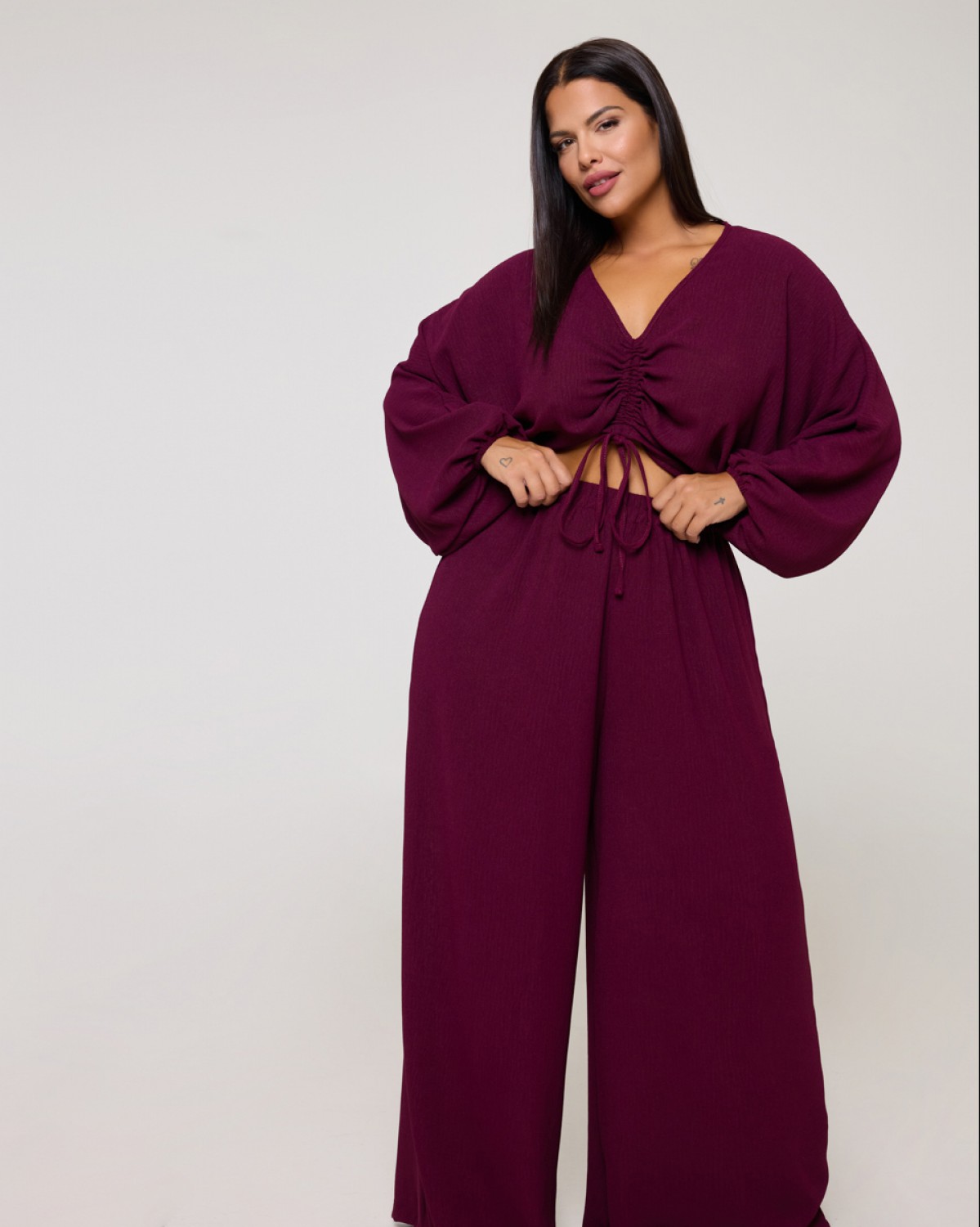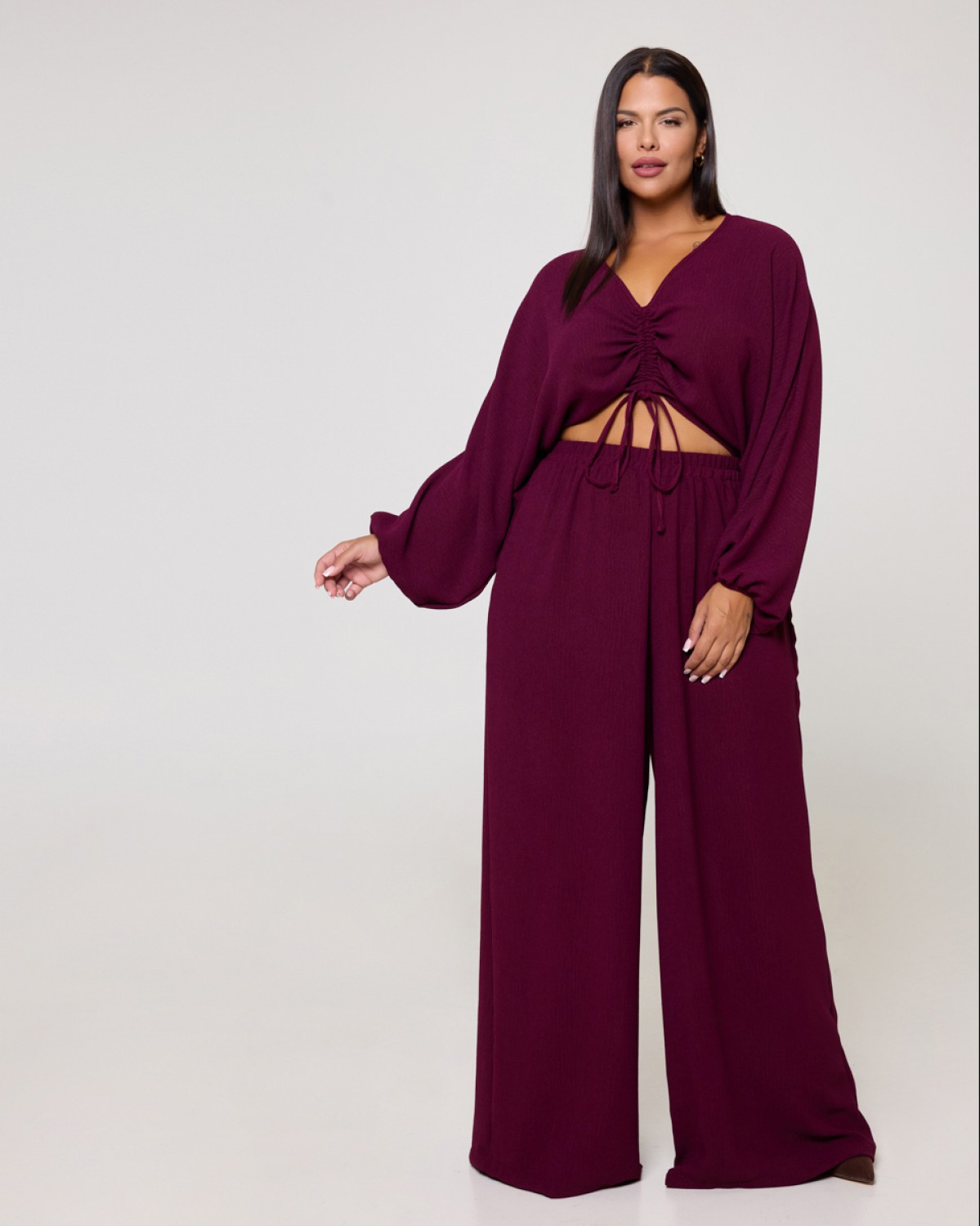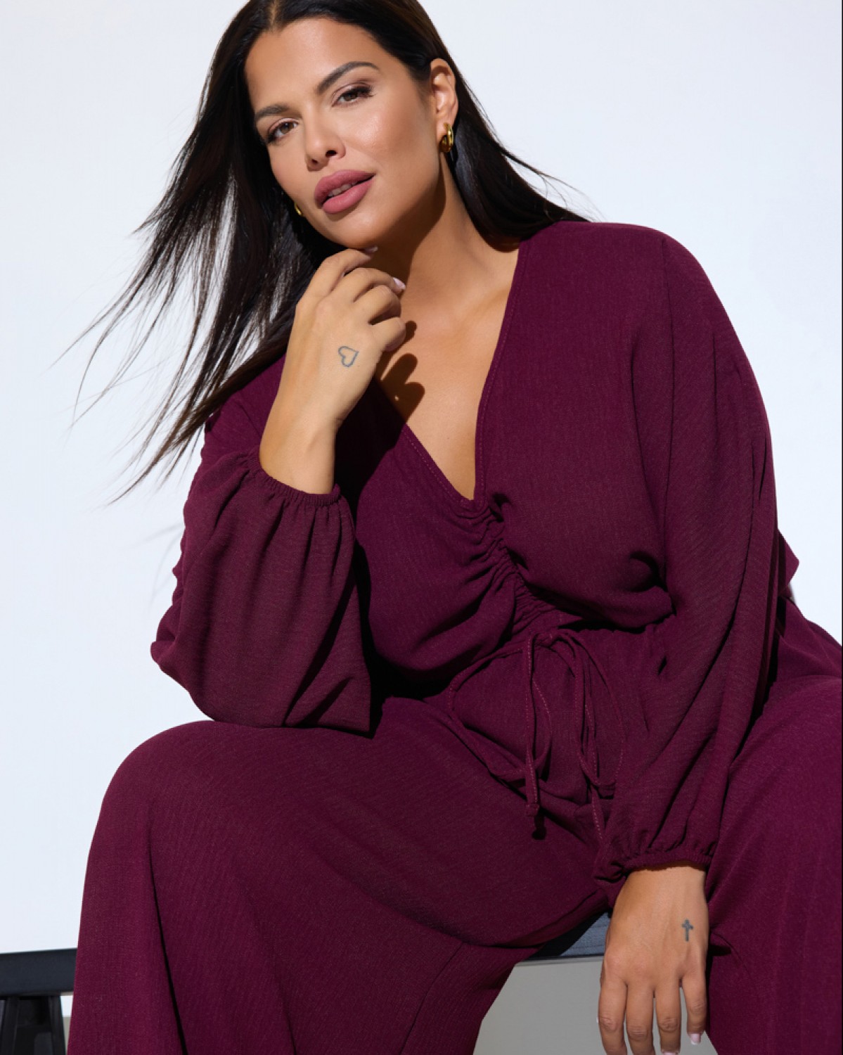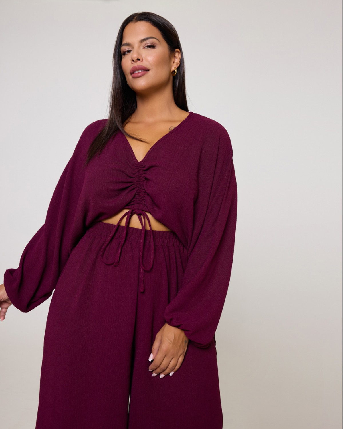 Σετ Μπλούζα Με Σούρα - Παντελόνα Δαμασκηνί