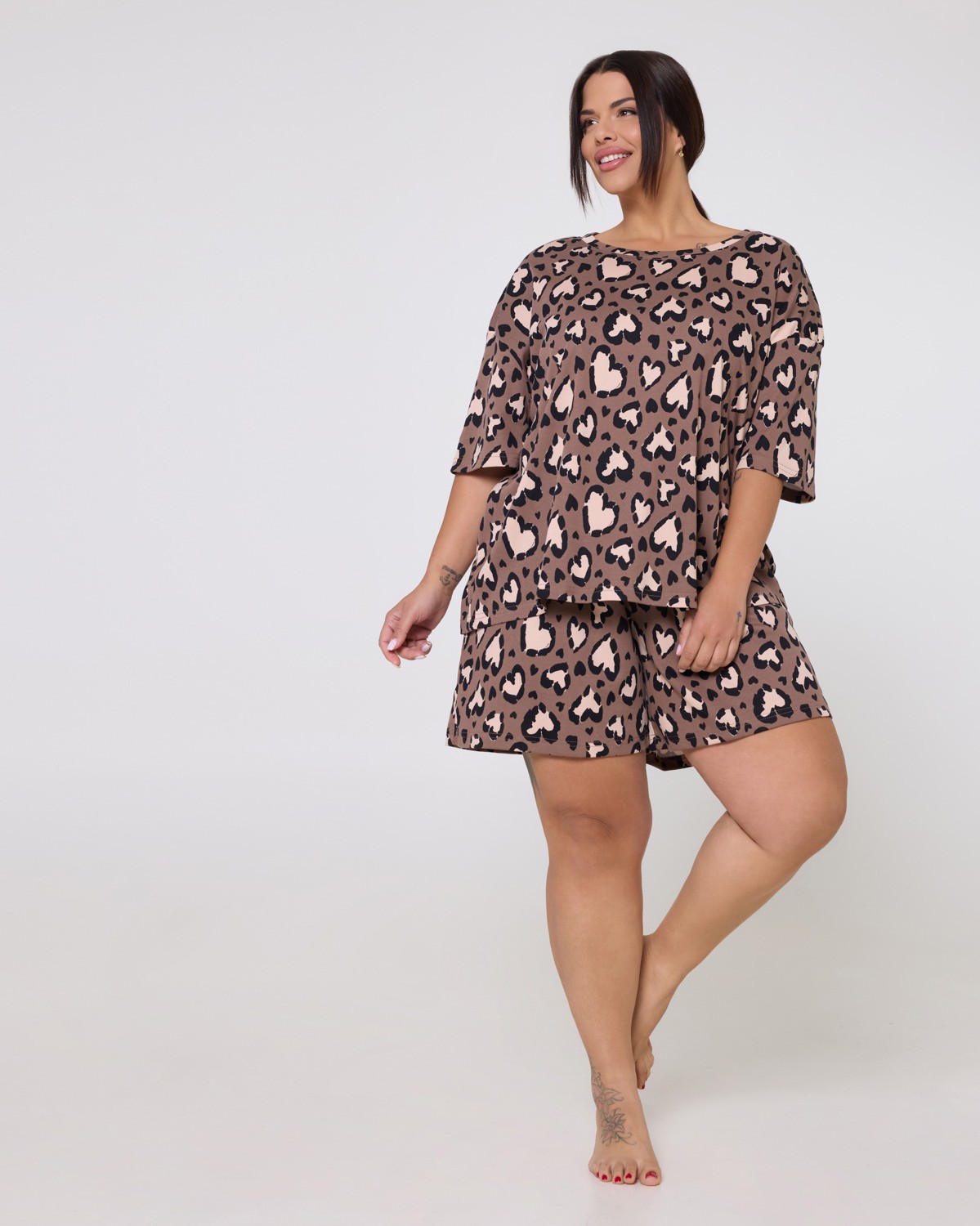 Σετ Πιτζάμα Με Καρδιές Καφέ Σκούρο