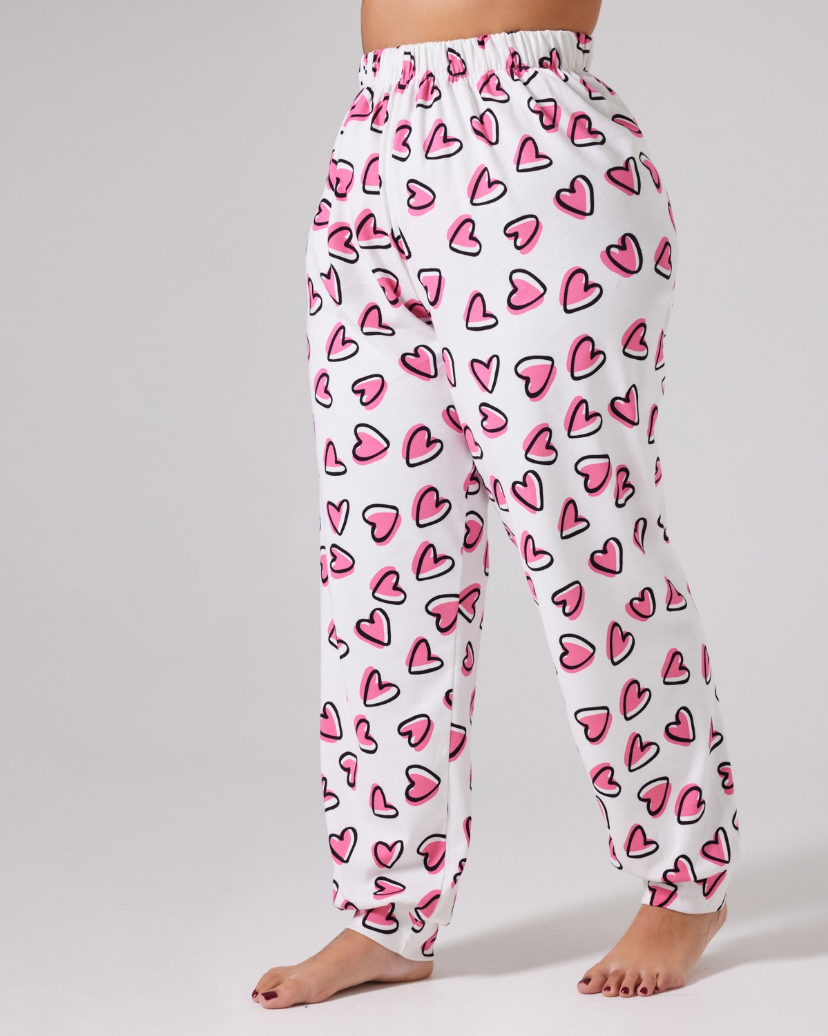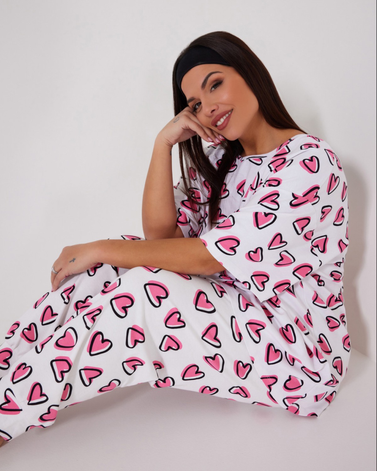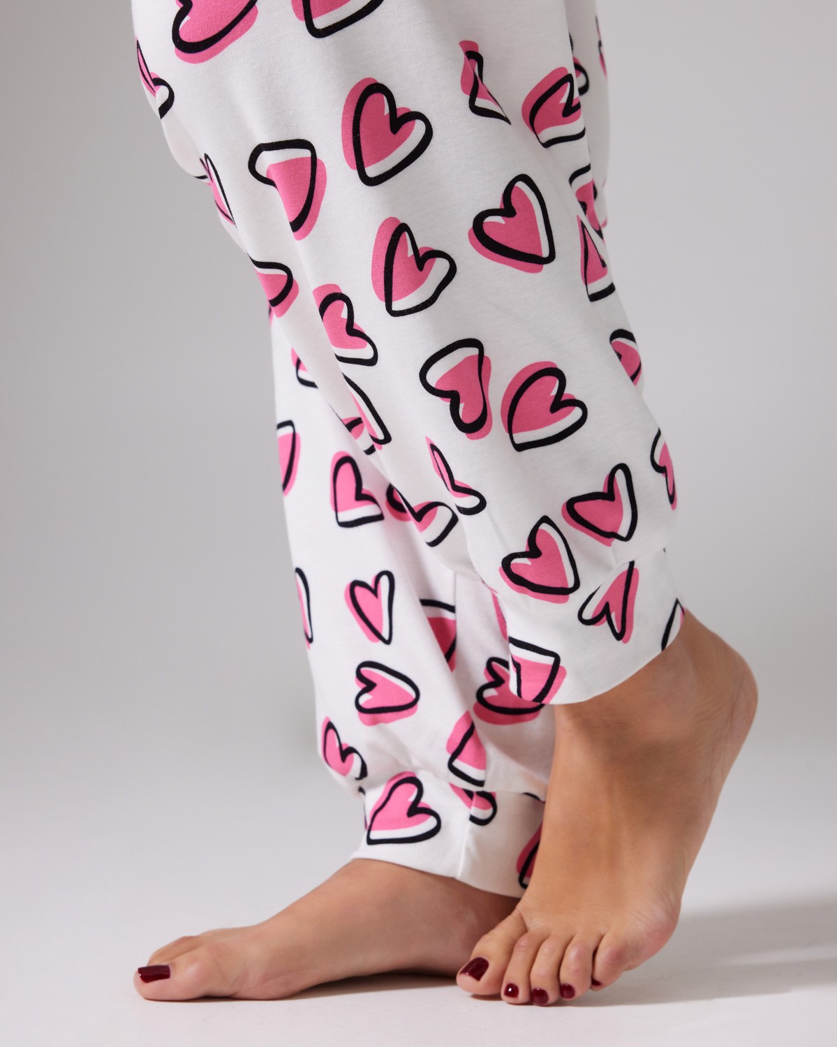 Σετ Πιτζάμας Μακρύ Παντελόνι Με Καρδιές Ροζ