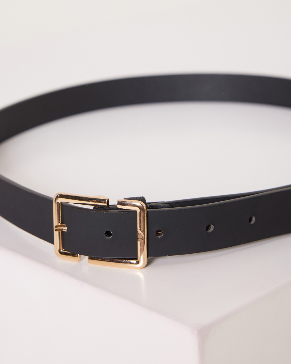 Ζώνη Μαύρο Με Χρυσή Τετράγωνη Αγκράφα